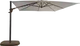 Providing flexible coverage for a wide range of outdoor setups, the La Mesa Cove cantilever style umbrella is a fantastic choice. This 10' square shaped umbrella offers high 98% UV protection with long lasting Sunbrella fabric in a flax color. Durable too, Sunbrella fabric is known for its ability to resist fading, mold and mildew. Easy to operate with a hand crank and offering versatile coverage, the umbrella rotates 360 degrees with a foot pedal and has an impressive front to back tilting feature. The pole and 50 pound sand-weighted base are crafted of rust proof powder coated aluminum in a bronze finish. 100% Sunbrella fabric.