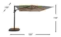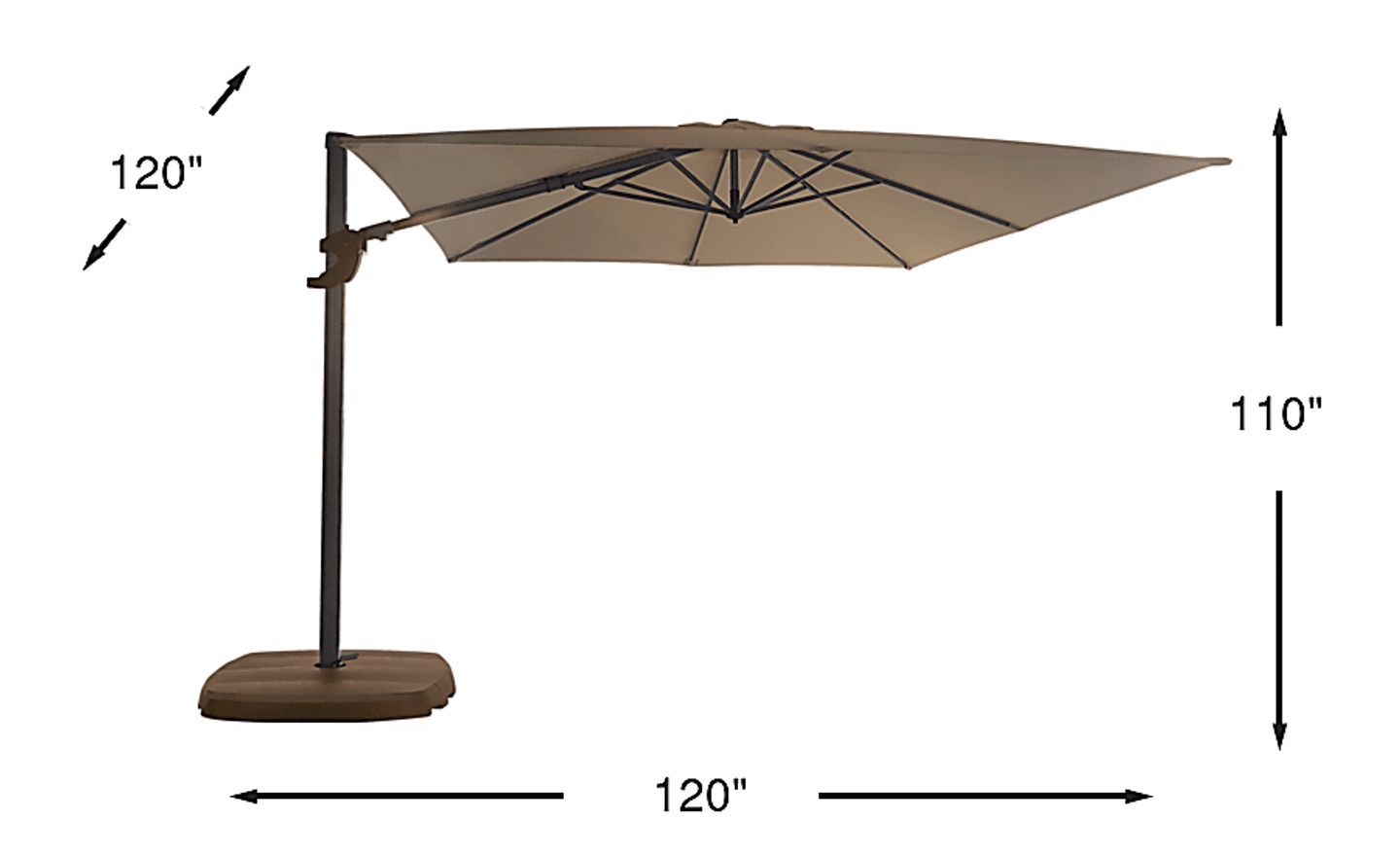 Providing flexible coverage for a wide range of outdoor setups, the La Mesa Cove cantilever style umbrella is a fantastic choice. This 10' square shaped umbrella offers high 98% UV protection with long lasting Sunbrella fabric in a beige color. Durable too, Sunbrella fabric is known for its ability to resist fading, mold and mildew. Easy to operate with a hand crank and offering versatile coverage, the umbrella rotates 360 degrees with a foot pedal and has an impressive front to back tilting feature. The pole and 50 pound sand-weighted base are crafted of rust proof powder coated aluminum in a bronze finish. 100% Sunbrella fabric.
