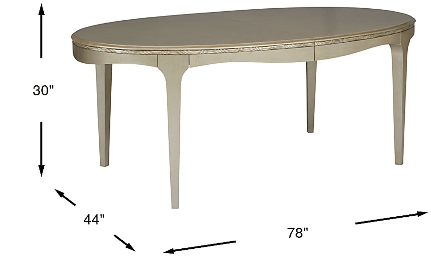 Everyday elegance is yours with the La Reina dining table. This chic piece has a beautiful oval shape enhanced with rope moulding and a statement making sliver finish that adds to the impact of this stunning gathering place. With the addition of an 18-inch leaf, the table easily extends from 78 inches to 96 inches to welcome extra guests. The table is crafted with solid wood framing, poplar solids and birch veneers.