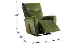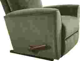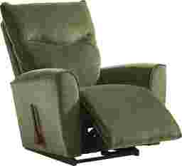 From movie night to game day, everyday enjoyment and relaxation become the go-to lifestyle with the Belmont I recliner's plush support and soft curves. Transitional in style, this piece is upholstered in a soft cypress green fabric that enriches the room with cozy texture and color. A tailored silhouette is shaped by gently flared arms and a generously padded back with subtle tufting. A lever finished in warm brown allows you to recline effortlessly while you relax. Upholstery: 90% Polyester, 7% Rayon
