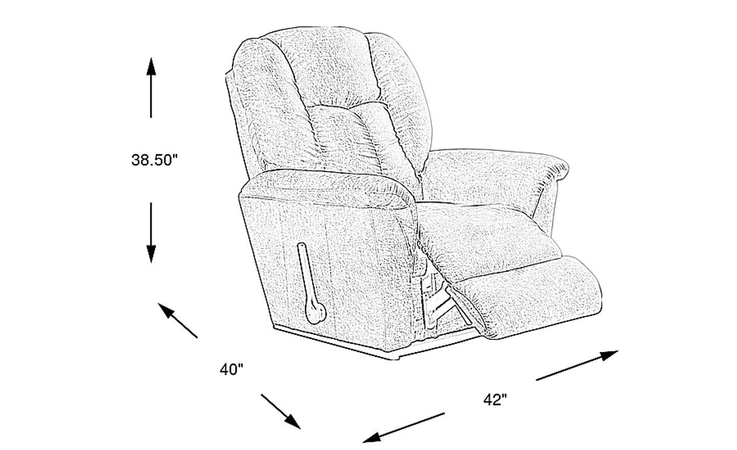 With dimensions of 40"W x 38.5"D x 42"H, this is a generous piece of furniture. Because it is a rocker recliner, you should ensure there is several inches of clearance behind the chair to allow the back to tilt and the base to rock freely without hitting the wall. For the best experience, we recommend measuring your space to allow for the full extension of the padded chaise footrest.