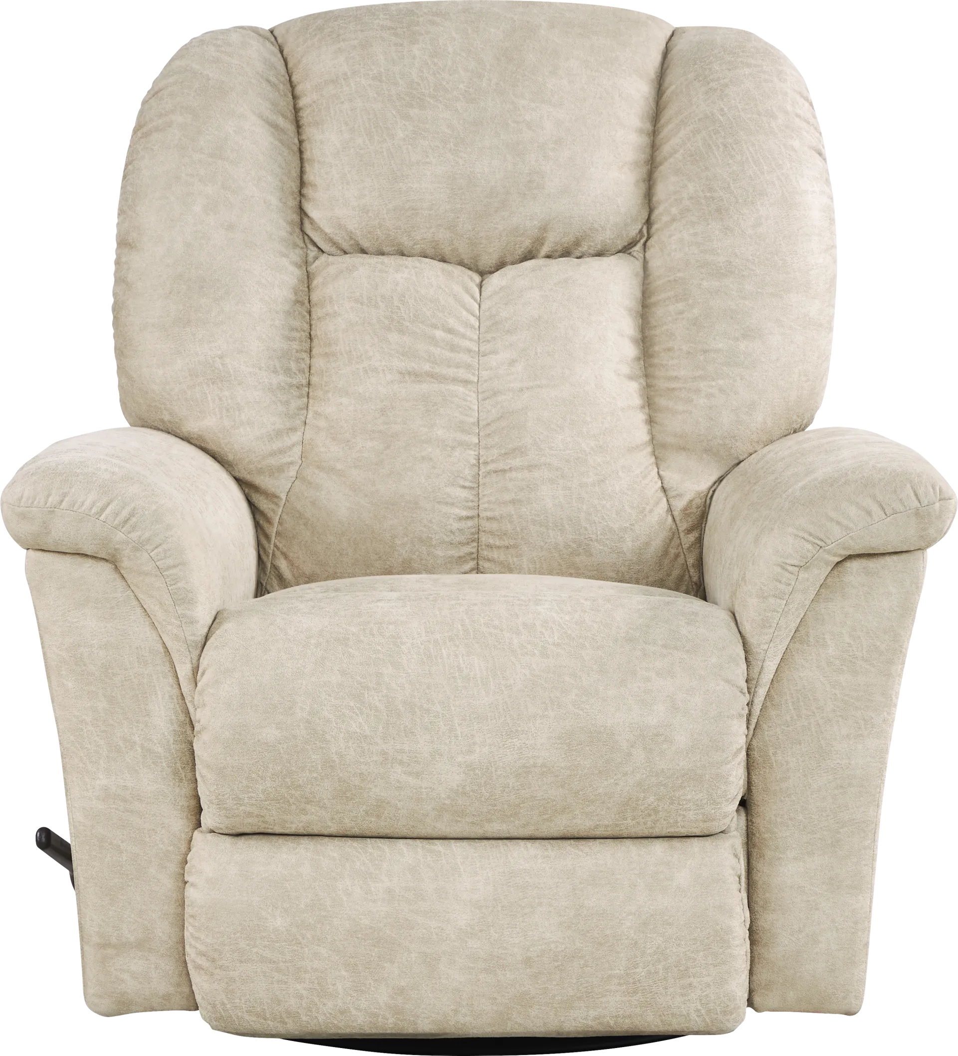 The clean, tailored lines and pillowy comfort of the Jasper recliner mean livin' large has never looked or felt so good. This generous and welcoming recliner features sloped arms and a padded chaise footrest upholstered in plush beige fabric. The wide seat and elongated back and base are perfect for taller users, and the high-grade seat cushion maintains its shape and support for years of enjoyment. The 3-position footrest and 16-position ratcheting recline mechanism can be engaged independently of one another, allowing users to find their own perfect combination. When not reclining, the tranquil rocking and swivel functions make this the most soothing seat in the house whether or not the footrest is in use. Upholstery: 100% polyester.