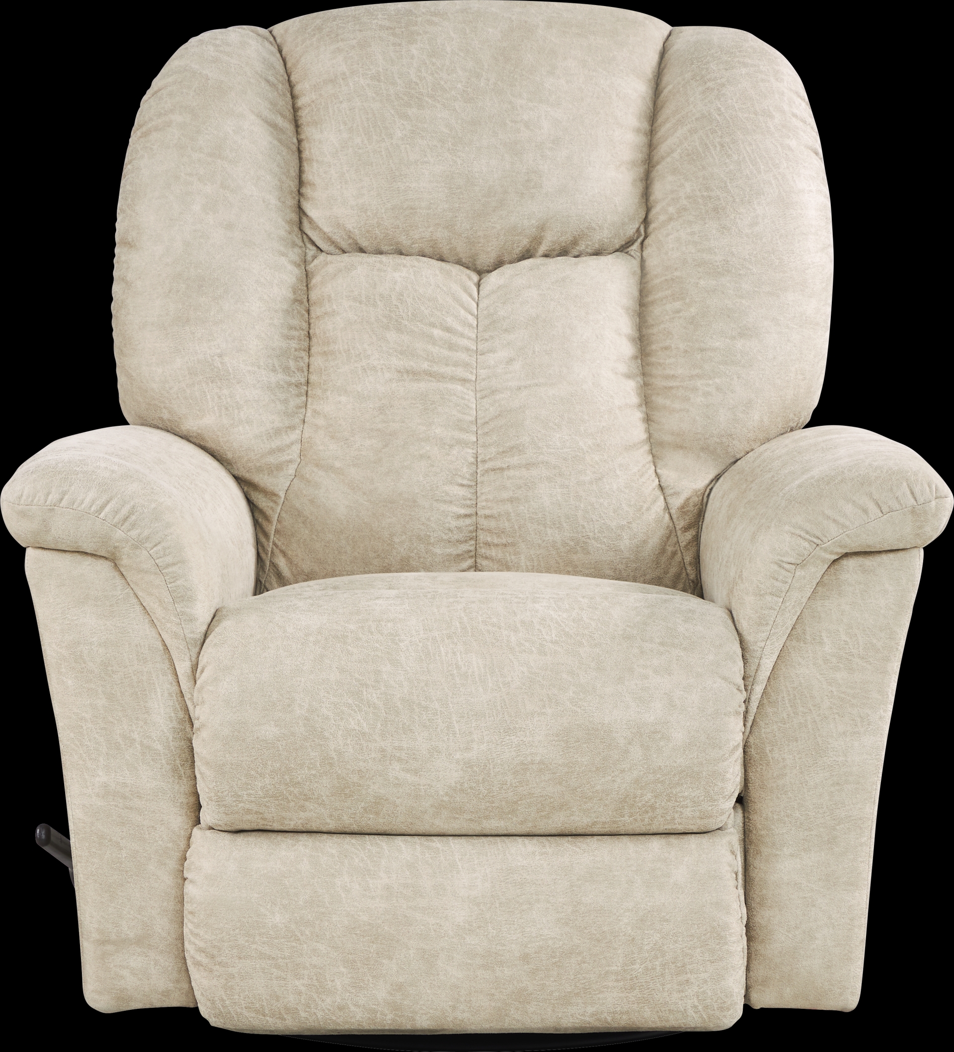The clean, tailored lines and pillowy comfort of the Jasper recliner mean livin' large has never looked or felt so good. This generous and welcoming recliner features sloped arms and a padded chaise footrest upholstered in plush beige fabric. The wide seat and elongated back and base are perfect for taller users, and the high-grade seat cushion maintains its shape and support for years of enjoyment. The 3-position footrest and 16-position ratcheting recline mechanism can be engaged independently of one another, allowing users to find their own perfect combination. When not reclining, the tranquil rocking and swivel functions make this the most soothing seat in the house whether or not the footrest is in use. Upholstery: 100% polyester.