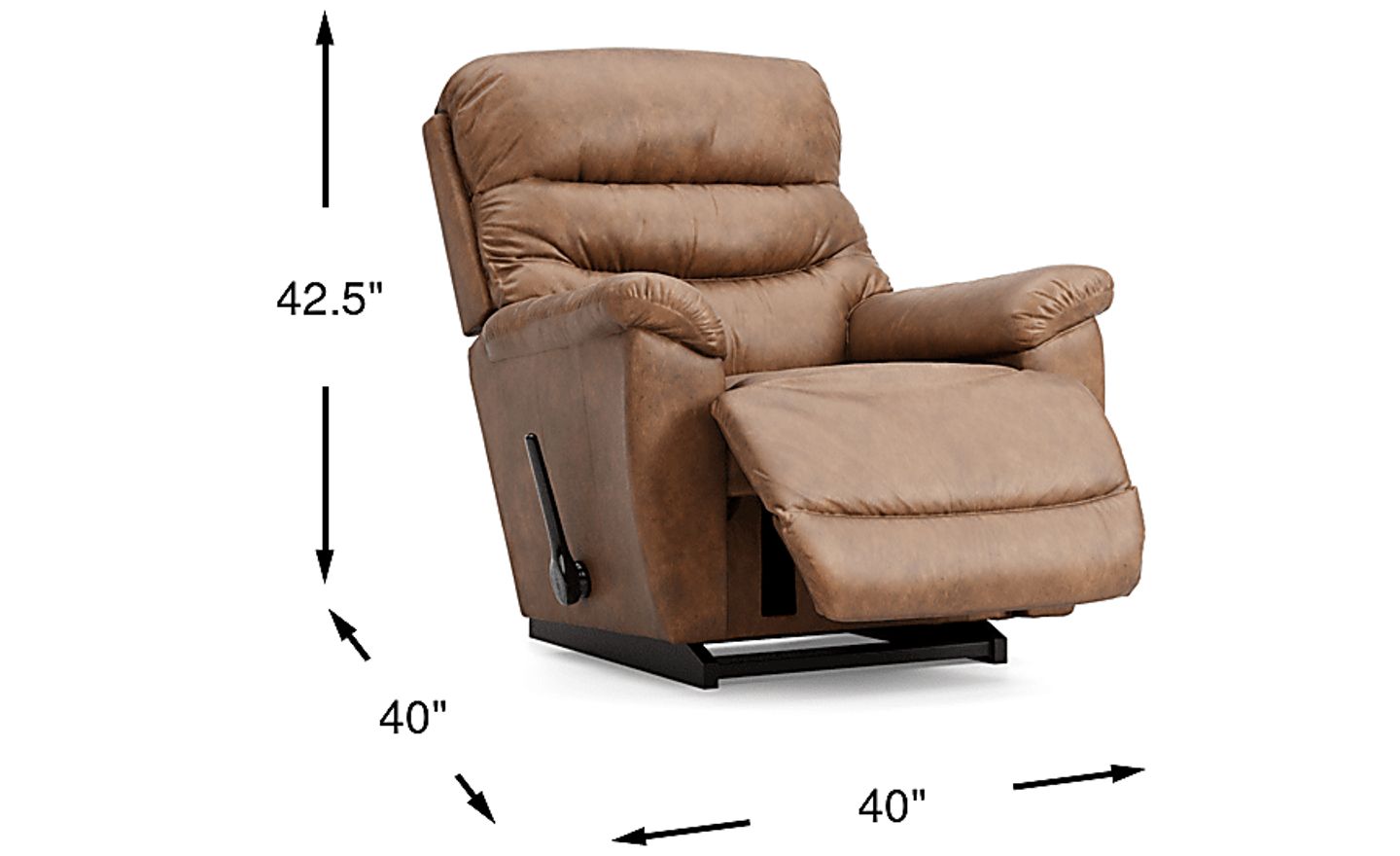This model has a footprint of 40"W x 40"D x 42.50"H. Because it features a rocking motion in addition to its reclining function, it requires more clearance than a "wall-hugger" style chair. To ensure the chair can rock freely and fully extend the 16-position ratcheting back without hitting any obstructions, we recommend placing it with at least 10 to 12 inches of clearance from the wall.
