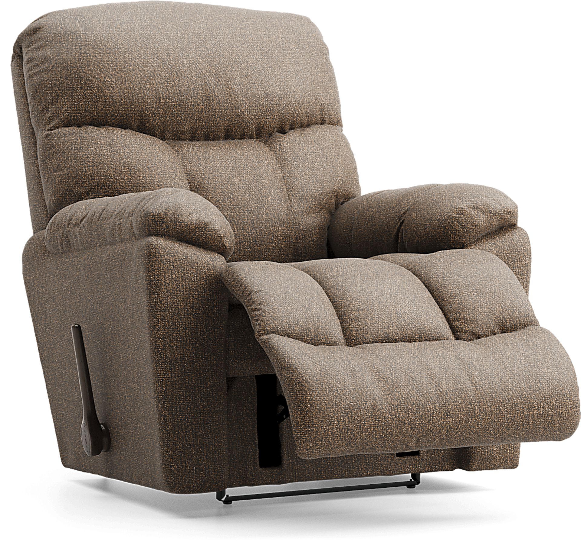 Overflowing with plush, pillowy indulgence, the Morrison II recliner welcomes you to unwind in family-friendly style. This transitional piece features deep tufting and full-length padding from the bottom of the footrest to the supportive headrest, upholstered in a brown knit fabric. A higher base and elongated footrest mean this piece is ideal for taller users. The 3-position footrest and recline mechanism can be engaged independently of one another, allowing users to find their own perfect combination. This recliner can be positioned just inches from the wall for space-saving relaxation. Upholstery: 100% Polyester.