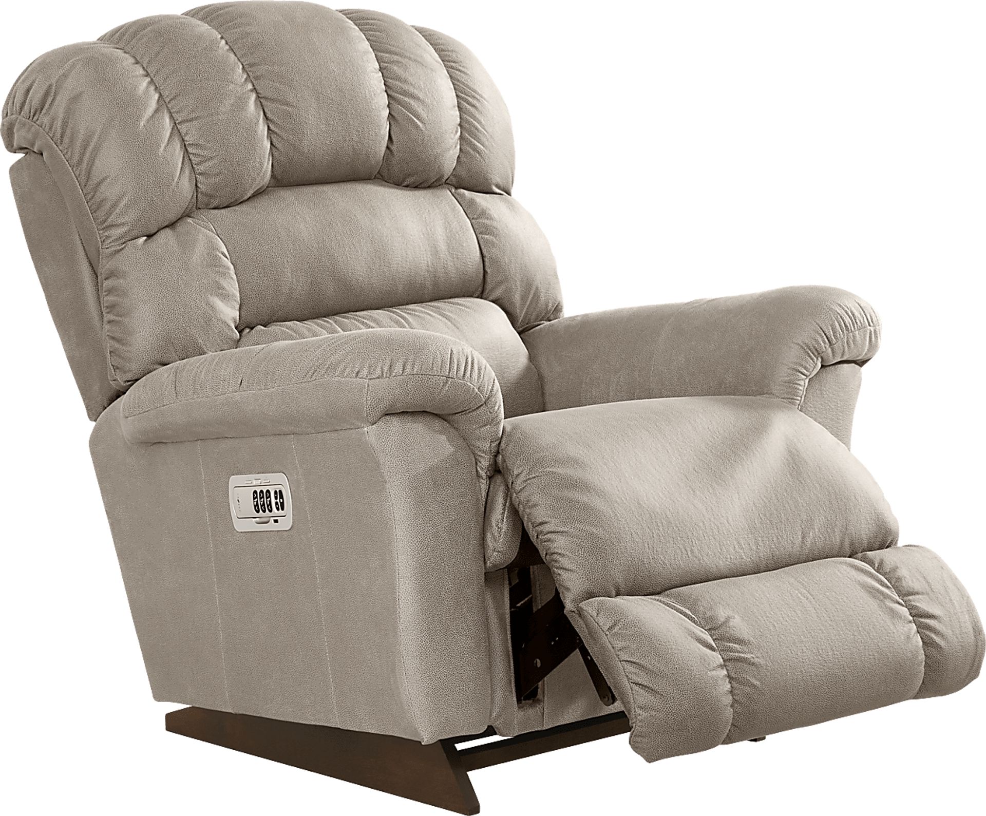 With extra plush cushions and deep channeled tufting that creates pillowy comfort across every inch, it's easy to find everything to love about the Randell rocker recliner. Taupe knitted fabric offers a neutral backdrop across the extra-tall biscuit style back of this traditional-style chair. Sloped pillow arms help users nestle into the deep cushions, and the higher base and elongated footrest provides full-length comfort for taller members of the household. The unique dual power reclining mechanism includes a footrest, backrest and headrest that can be controlled independently. Set into the arm is a charging cradle with a wireless remote and USB port. Two memory buttons mean your favorite reclining positions are available at a moment's notice. A "find me" feature inside the cradle ensures you can locate the remote with a gentle sound if it happens to run off. Finished reclining? The home button returns you to an upright position that's ideal for enjoying the gentle rocking motion of this seat. Upholstery: 100% Polyester.