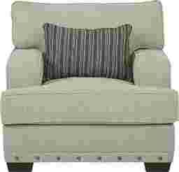 Curl up with a good book in the Laden Heights chair. This charming piece features sinuous wire seating design and soft beige woven upholstery for lasting comfort, while its subtle nailhead base border adds a prim touch. Sleek block legs and a stylish striped toss pillow complete the look. 100% Polyester