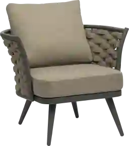 With its causal sophistication, the Lafargue taupe accent chair offers refined and versatile seating for indoor and outdoor spaces. Featuring a stylish woven back and accented with fabric seat cushions, this chair makes a perfect addition to any room. Customer assembly is required.