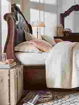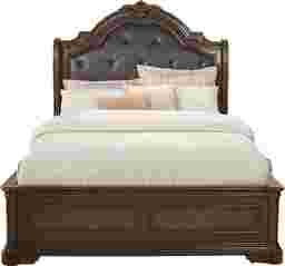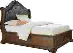 The traditional style of the Lafayette bed brings an element of elegance to your bedroom. Its sturdy construction of poplar wood solids and walnut and cherry veneers in a rich brown shade ensures this piece lasts for years to come. Intricate carving details at the headboard and footboard offer a classic touch, while the charming upholstered headboard creates a refined place to unwind.