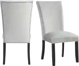 The Lafortune gray side chair set instantly updates your dining room. This duo is upholstered in a show stopping gray velvet, which will elevate your dining room to the next level. Chrome nail head trim outlines the edges of these chairs, adding extra flair to this already stunning set. The gray velvet pairs beautifully with the sleek, black finish on the legs. Add these chairs to your home today for a look that will never go out of style. Customer assembly is required.