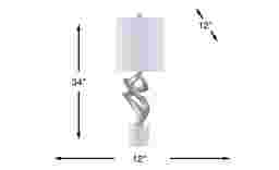 Inspired by modern art, the Laight Hollow table lamp demonstrates the future of style. Its silver-colored body forms a double helix, replicating the structure of a human DNA strand. Completing this piece, the bottom of the base boasts the appearance of marble stone. This lamp accommodates a maximum 100-watt standard bulb and includes a convenient three-way switch.
