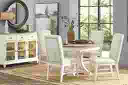 Lainey Cottage White 5 Pc Round Dining Room with Upholstered Chairs