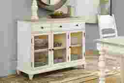 While the terms are often used interchangeably, a server is traditionally more compact and formal than a buffet or sideboard. This cottage-inspired server is designed with a slim 18-inch depth, making it an ideal choice for smaller dining rooms where you need storage and a serving surface without obstructing the flow of the room.