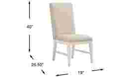 The familiar warmth and simplistic beauty of a refined farmhouse is the Lainey Cottage collection's calling card with its time-worn textures and classic craftsmanship. Crafted with pine and maple veneers in an antique white finish, this cottage-inspired side chair features upholstered seats and backs in a warm white fabric for a soft and comfortable sit. The weathered gray back framed with a silver nailhead trim offers a stylish contrast in both texture and color.