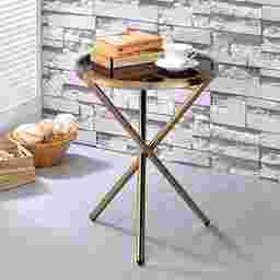The Lajita champagne accent table is one of the best statements for modern design with its trend of using basic design elements and minimal materials. This accent table features a painted metal frame in champagne with a black glass top. Its round shape fits easily into any small space or narrow corner. Some customer assembly required.