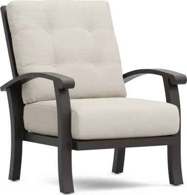 The cushions are upholstered in 100% Sunbrella fabric, the industry standard for outdoor performance. These parchment-colored cushions are specifically designed to be mold and mildew-resistant, which is essential for humid environments. The solution-dyed acrylic fibers repel moisture, ensuring that the fabric remains breathable and resists the staining often caused by damp conditions.