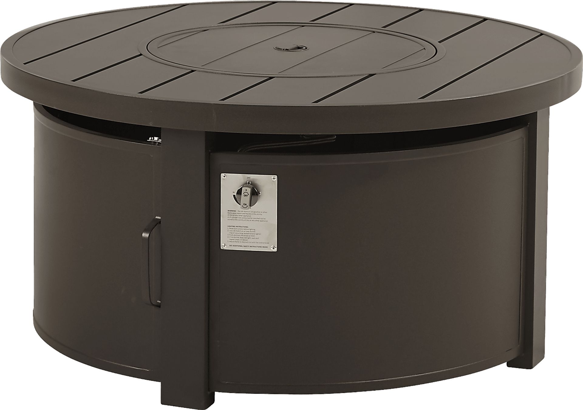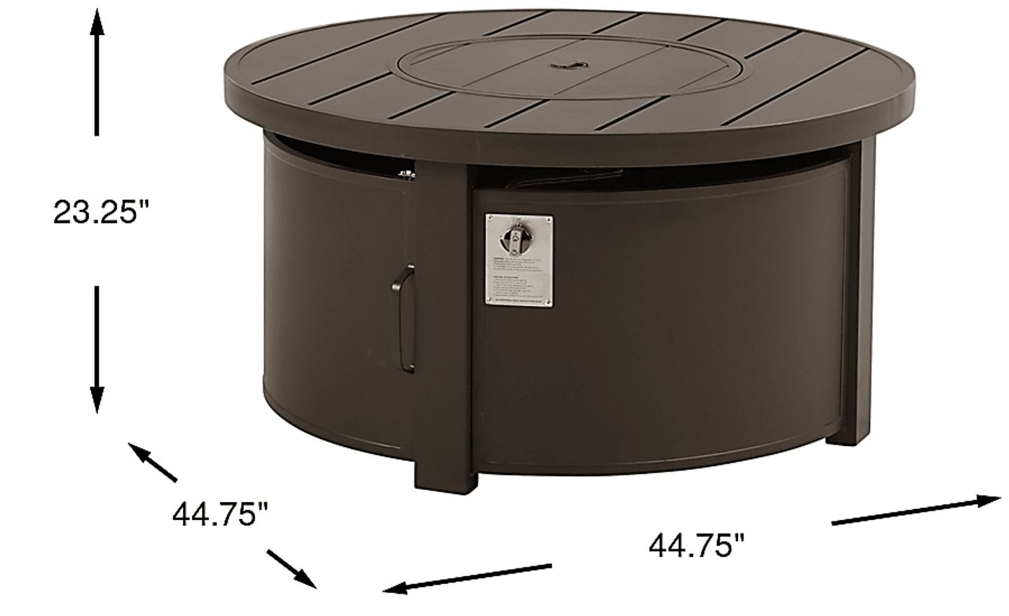 Cooler nights are better when enjoyed gathered around a fire pit and the Lake Breeze unit offers almost everything you need for an enjoyable evening. This 44-inch round fire pit features a lid and plank style top. The fire pit uses a standard propane tank with 60,000 BTU (not included), while the burners are stainless steel. The aluminum frame has a rust resistant all-weather powder coat finish using a hand applied aged bronze finished UV protected top coat. Clear petro glass beads come with this unit.