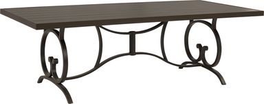 The decorative scrolled trestle base offers excellent stability on a variety of outdoor surfaces, from wooden decks to stone pavers. Because the weight is distributed through a central support system rather than four narrow legs, it is less prone to wobbling on slightly uneven ground. The cast aluminum construction also provides enough weight to remain secure in windy conditions while remaining manageable if you need to reposition your dining set.