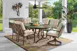 Lake Breeze Aged Bronze 5 Pc Oval Outdoor Dining Set with Desert Cushions