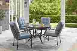 Lake Breeze Aged Bronze 5 Pc Round Outdoor Dining Set with Blueberry Cushions