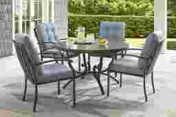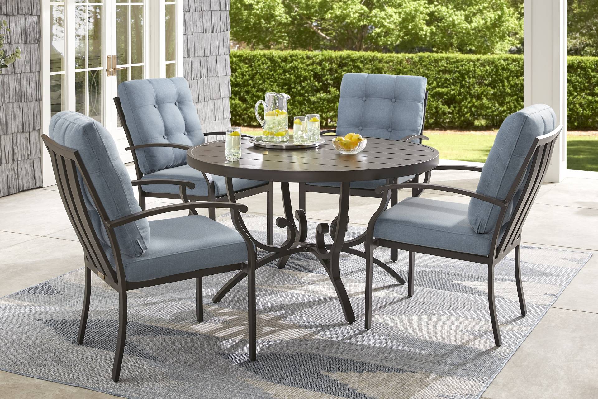 Lake Breeze Aged Bronze 5 Pc Round Outdoor Dining Set With Blueberry Cushions
