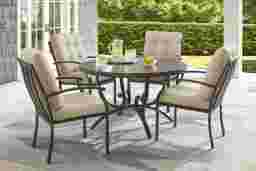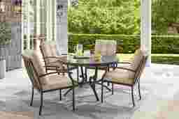 Lake Breeze Aged Bronze 5 Pc Round Outdoor Dining Set with Hemp-Colored Cushions