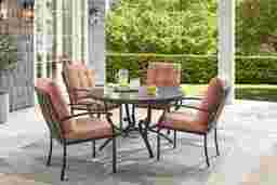 Lake Breeze Aged Bronze 5 Pc Round Outdoor Dining Set with Terracotta Cushions