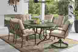 Lake Breeze Aged Bronze 7 Pc Oval Outdoor Dining Set with Hemp-Colored Cushions