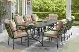 Lake Breeze Aged Bronze 9 Pc Outdoor Dining Set with Hemp-Colored Cushions
