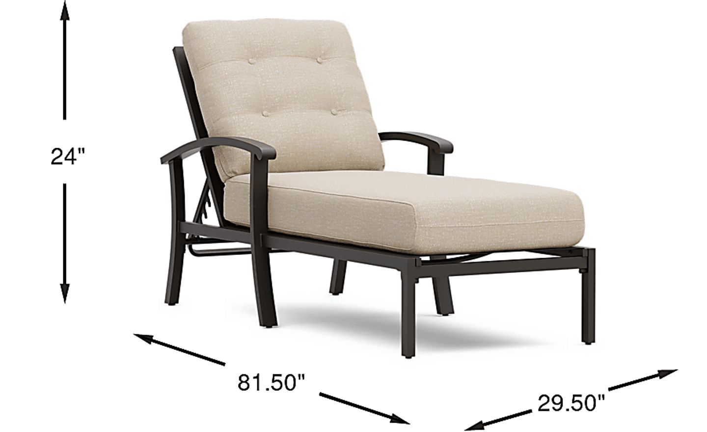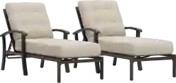 Take your style outside with the decorative and durable Lake Breeze collection. This set of two chaises easily balances comfort and durability with rust-resistant aluminum frames finished in an aged bronze. Cushions upholstered in a hemp colored outdoor fabric are resistant to mold and UV rays for lasting enjoyment. Thoughtful details include adjustable seat backs, 4-button tufted back cushions and French seams on each seat cushion.