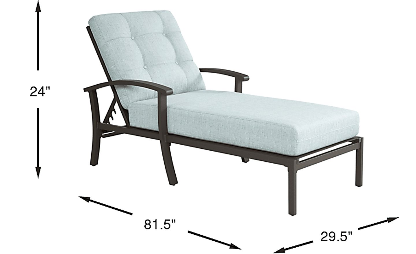 Perfect for lounging the day away poolside, the Lake Breeze chaise easily balances comfort and durability. It's made with a rust-resistant aluminum frame finished in an aged bronze. Cushions upholstered in a misty blue Sunbrella fabric are resistant to mold and UV rays for lasting enjoyment. Thoughtful details include an adjustable seat back, 4-button tufted back cushion and French seaming on the seat cushion. To clean Sunbrella fabric cushions remove dirt and spray on cleaning solution (water and mild soap), then use a soft bristle brush or sponge. Allow cleaning solution to soak into fabric and rinse thoroughly until soap residue is removed. Air dry. Do not dry clean.