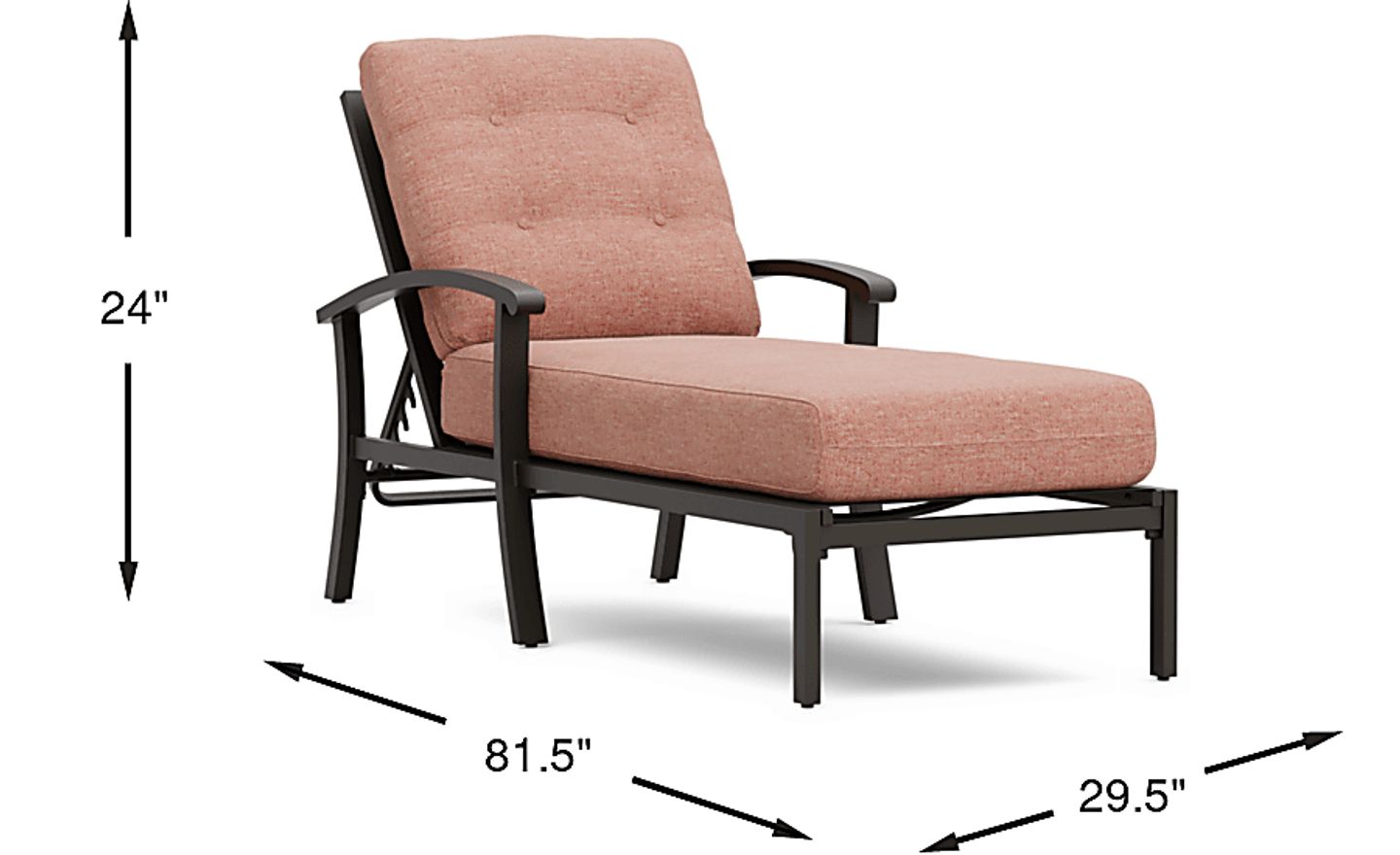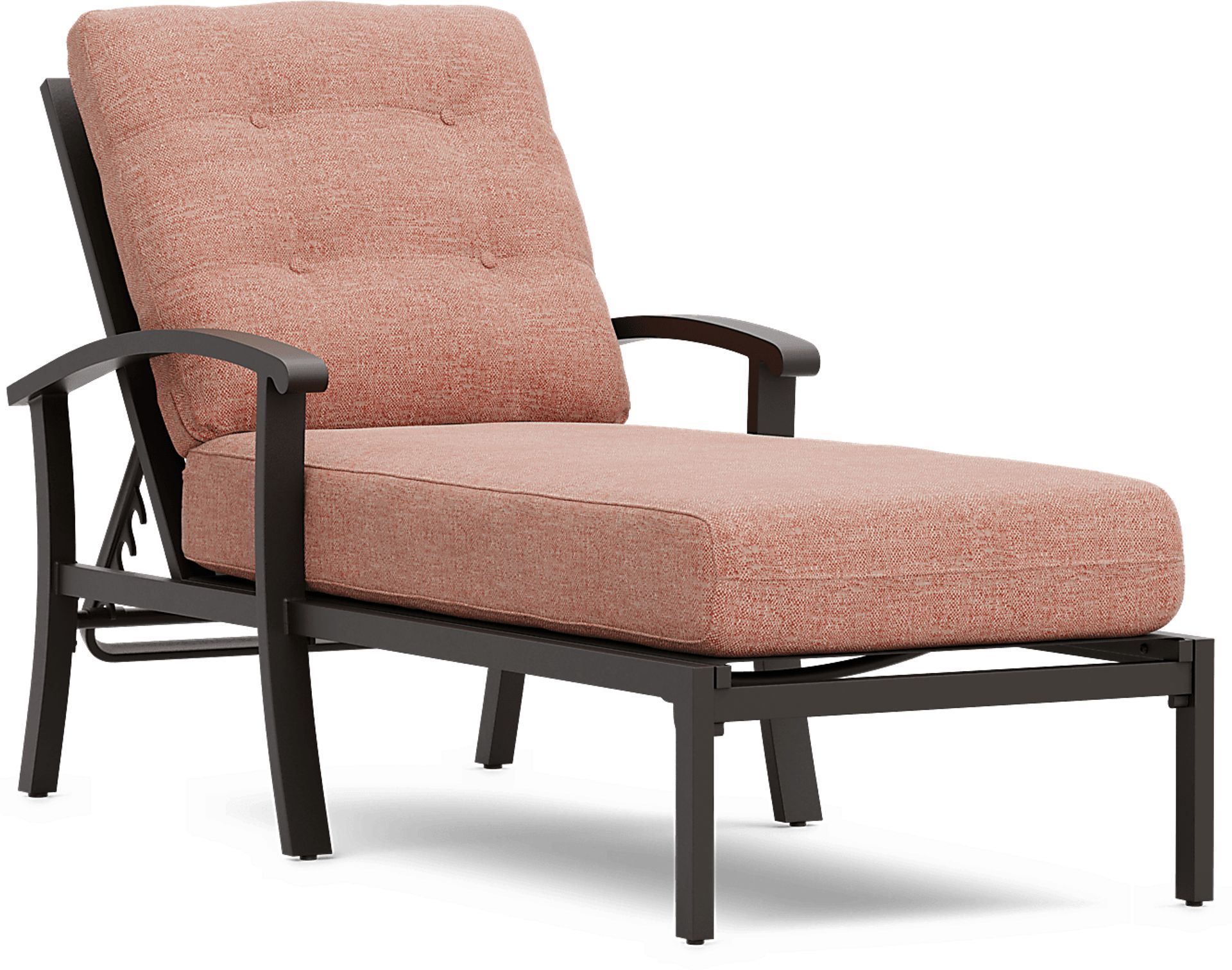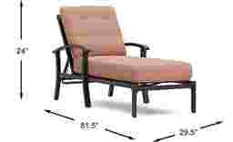 Perfect for lounging the day away poolside, the Lake Breeze chaise easily balances comfort and durability. It's made with a rust resistant aluminum frame finished in an aged bronze. Cushions upholstered in a terracotta orange Sunbrella fabric are resistant to mold and UV rays for lasting enjoyment. Thoughtful details include an adjustable seat back, 4-button tufted back cushion and French seaming on the seat cushion. To clean Sunbrella fabric cushions remove dirt and spray on cleaning solution (water and mild soap), then use a soft bristle brush or sponge. Allow cleaning solution to soak into fabric and rinse thoroughly until soap residue is removed. Air dry. Do not dry clean.