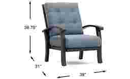 Perfect for creating an outdoor conversation area, the Lake Breeze club chair easily balances comfort and durability. It's made with an aluminum frame in a rust resistant all-weather powder coat using a UV-protected top coat in an aged bronze finish. Outdoor performance fabric covered cushions, in a blueberry color, are colorfast and UV-resistant for durable outdoor use. Thoughtful details include a slat back, button tufted back cushions and French seaming on the seat cushion. Select cushion colors available in Sunbrella fabric