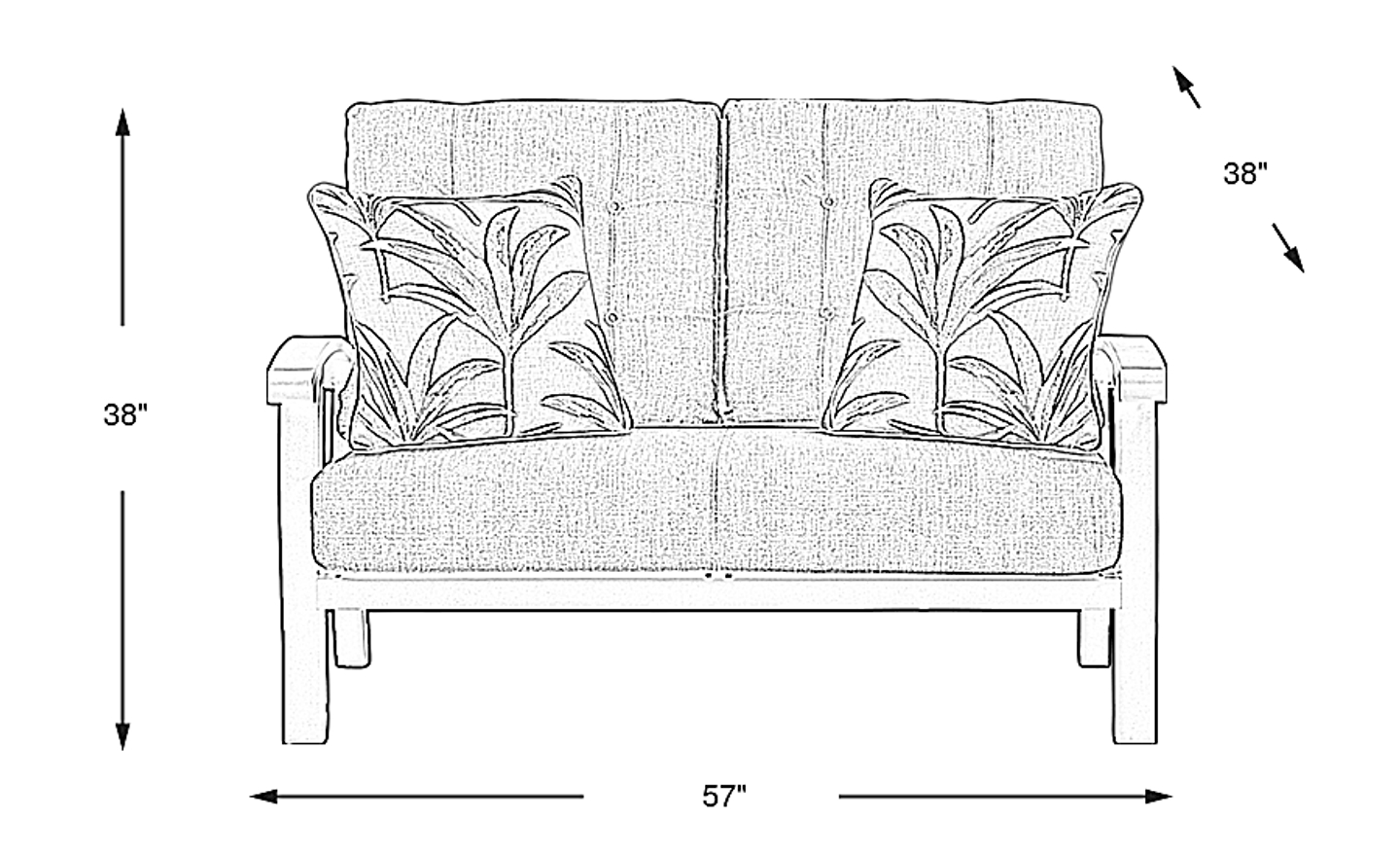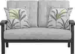 Enjoy the great outdoors with a friend seated by your side. The Lake Breeze loveseat has room for two thanks to twin back cushions with tufted button detailing and a long cozy seat cushion with French seaming. Its mist colored Sunbrella fabric resists fading and is mold and mildew resistant for long lasting durability. Additional longevity is provided by the slat back loveseat's aluminum frame in a rust resistant all-weather powder coat using a UV-protected top coat in an aged bronze finish. 100% Sunbrella fabric. To clean Sunbrella fabric cushions remove dirt and spray on cleaning solution (water and mild soap), then use a soft bristle brush or sponge. Allow cleaning solution to soak into fabric and rinse thoroughly until soap residue is removed. Air dry. Do not dry clean.