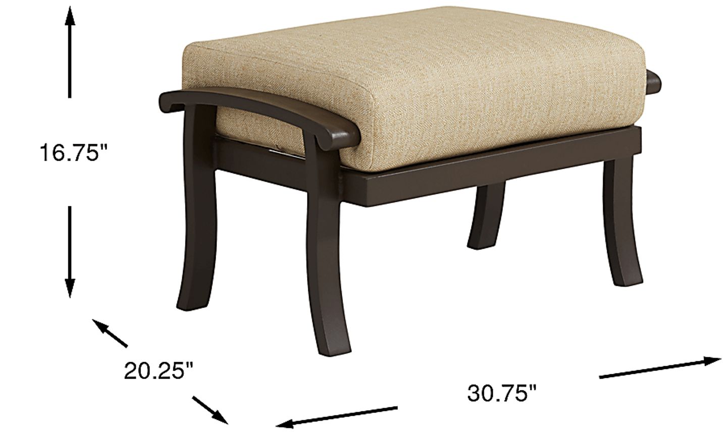 Ideal for kicking back while enjoying the sun and fresh air, the Lake Breeze ottoman is ready to greet tired feet and legs. The ottoman is made with an aluminum frame while the cushion is covered in straw colored Sunbrella performance fabric which is mold and mildew resistant for outdoor durability. The ottoman's frame is completed in a rust resistant all-weather powder coat finish using a hand applied aged bronze finished UV protected top coat. 100% Sunbrella fabric. To clean Sunbrella fabric cushions remove dirt and spray on cleaning solution (water and mild soap), then use a soft bristle brush or sponge. Allow cleaning solution to soak into fabric and rinse thoroughly until soap residue is removed. Air dry. Do not dry clean.
