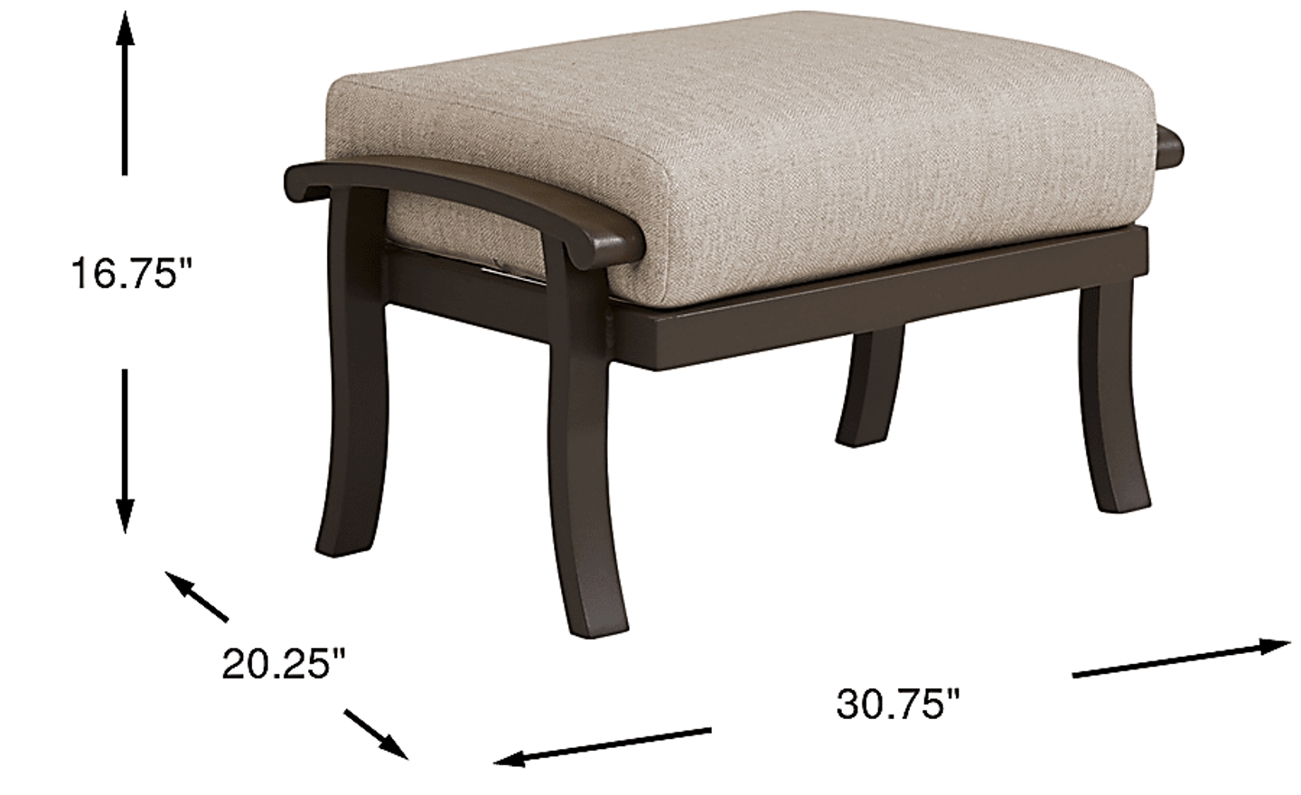 Ideal for kicking back while enjoying the sun and fresh air, the Lake Breeze ottoman is ready to greet tired feet and legs. The ottoman is made with an aluminum frame while the cushion is covered in wren (beige) colored Sunbrella performance fabric which is mold and mildew resistant for outdoor durability. The ottoman's frame is completed in a rust resistant all-weather powder coat finish using a hand applied aged bronze finished UV protected top coat. 100% Sunbrella fabric. To clean Sunbrella fabric cushions remove dirt and spray on cleaning solution (water and mild soap), then use a soft bristle brush or sponge. Allow cleaning solution to soak into fabric and rinse thoroughly until soap residue is removed. Air dry. Do not dry clean.