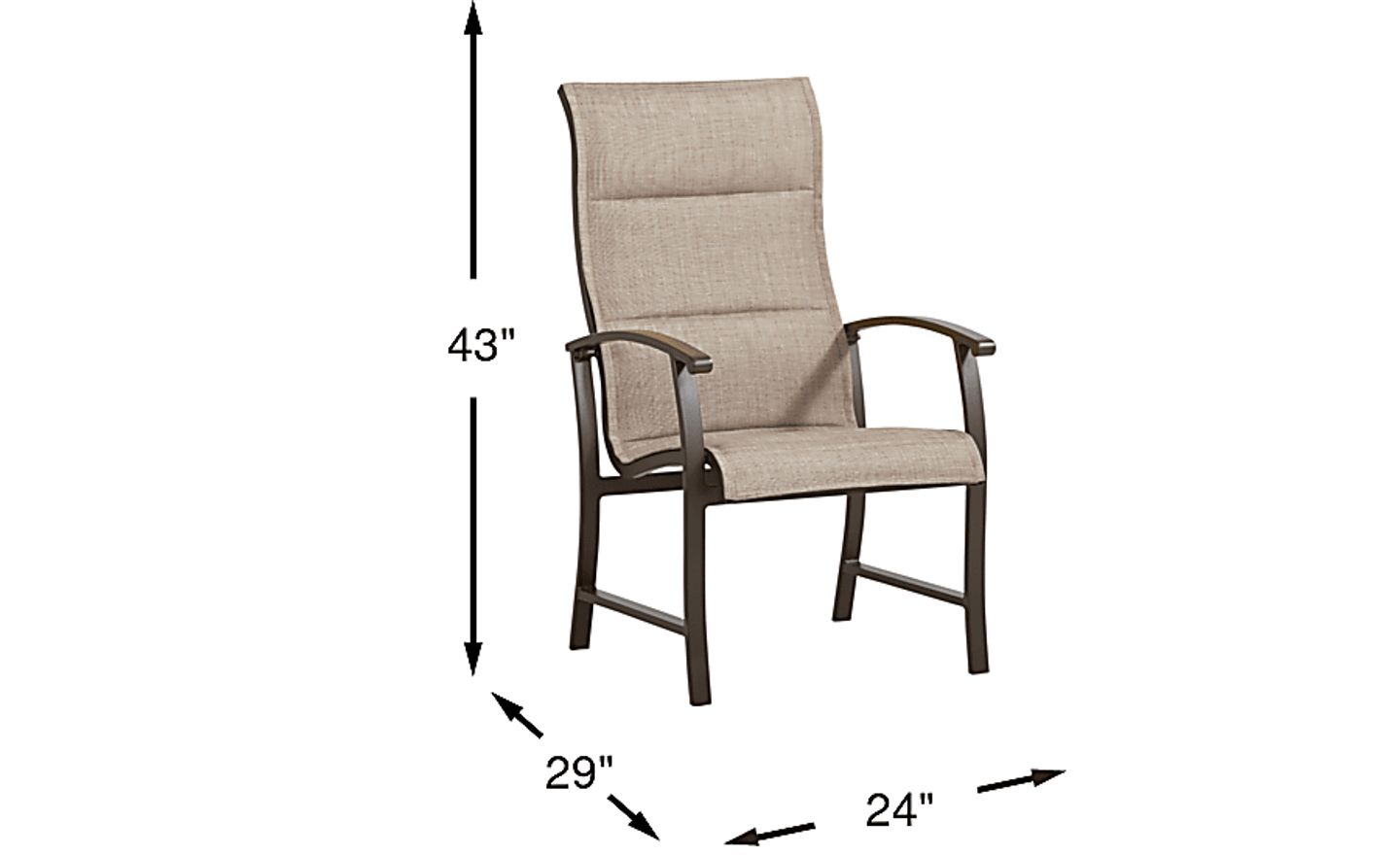 Enjoy many seasons of outdoor dining with the durable Lake Breeze dining chair. This tall back chair, featuring padded sling style seating, is made with an aluminum frame in a rust resistant all-weather powder coat finish using a hand applied aged bronze finished UV protected top coat.