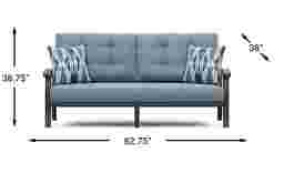 Measuring 82.75"w x 38"d x 38.75"h, this sofa is a versatile mid-sized piece. While it provides ample lounging space, its stationary design and clean track arms help it fit neatly against walls or railings. It is an excellent choice for standard suburban patios or larger balconies where you want the comfort of a full sofa without the footprint of a larger sectional.