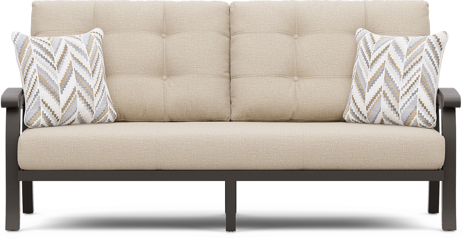 Lake Breeze Aged Bronze Outdoor Sofa With Hemp-colored Cushions