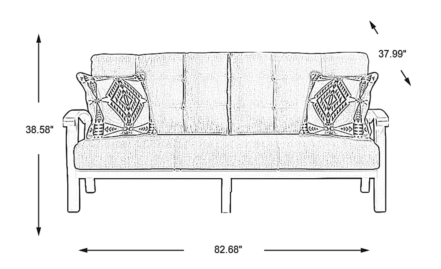 Take your style outside with the decorative and durable Lake Breeze sofa. This inviting piece features a slat back and is made with an aluminum frame in a rust resistant all-weather powder coat finish using a hand applied aged bronze finished UV protected top coat. Ink colored cushions resist fading and are mold and mildew resistant, creating long lasting and comfortable outdoor seating that can be enjoyed for many seasons. Decorative accent pillows and button tufting details on the back cushions add an appealing, tailored touch.