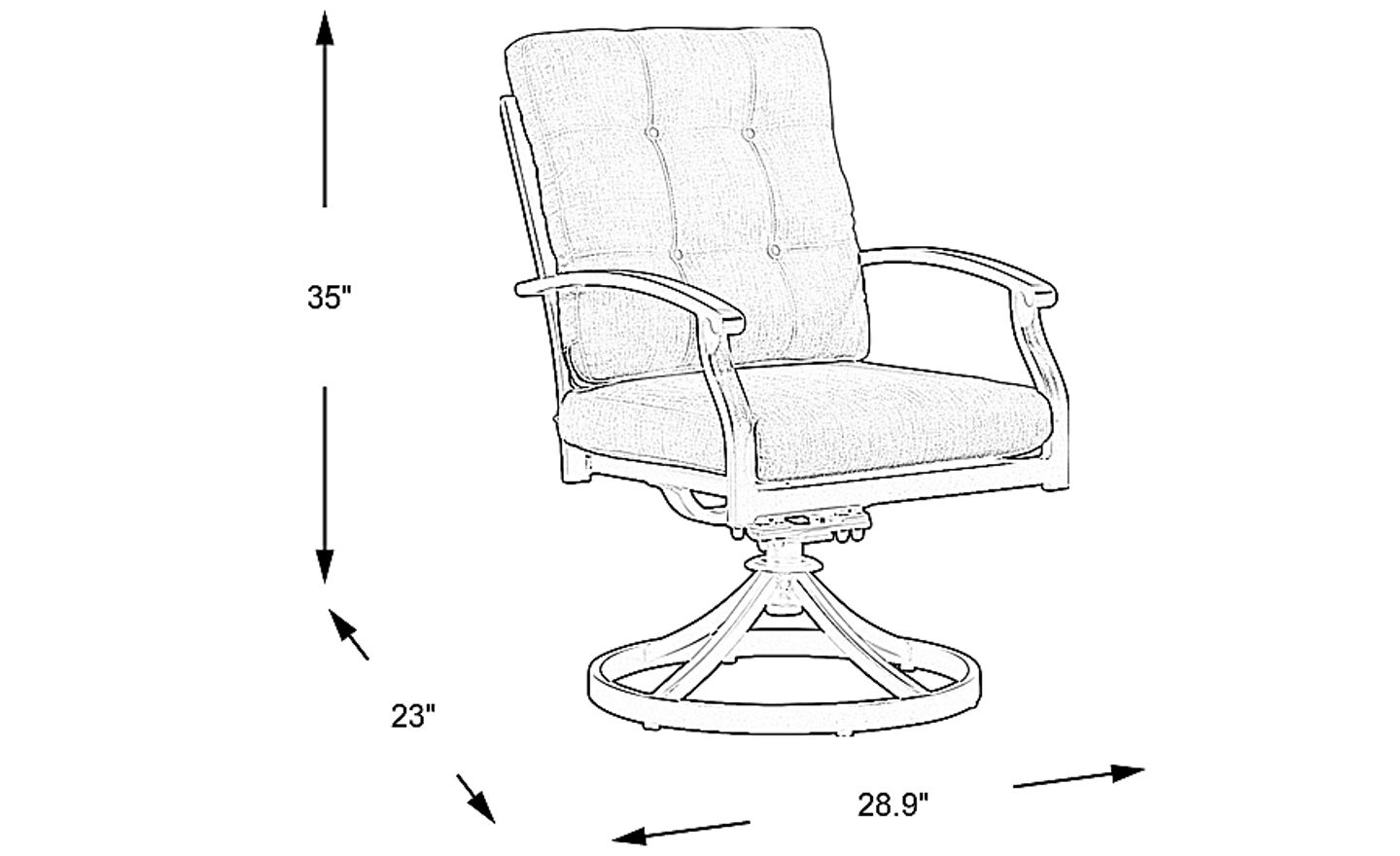 Complete your outdoor dining set with the Lake Breeze swivel dining chair. It's made with an aluminum frame in a rust resistant all-weather powder coat finish using a hand applied aged bronze finished UV protected top coat. Sunbrella performance fabric covered cushions, in a straw tone, are colorfast, mold and mildew resistant for durable outdoor use. Appealing details include swivel movement, slat back styling, straight arms, button tufted back cushions and French seaming on the seat cushion. 100% Sunbrella fabric. To clean Sunbrella fabric cushions remove dirt and spray on cleaning solution (water and mild soap), then use a soft bristle brush or sponge. Allow cleaning solution to soak into fabric and rinse thoroughly until soap residue is removed. Air dry. Do not dry clean.