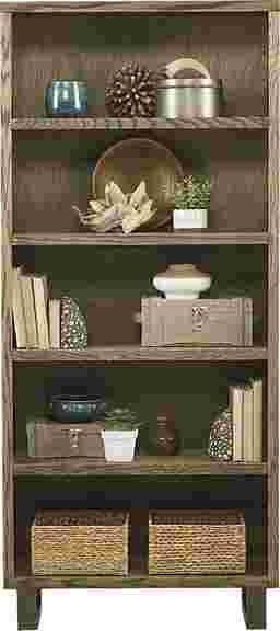 With a sleek contemporary design and rich brown finish, the Lake Ridge bookcase is a charming place to rest your book collection or display some favorite items. Made from oak and poplar solids with oak and maple veneers, five spacious shelves provide plenty of room for your items.