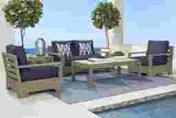 Lake Tahoe Gray 4 Pc Outdoor Loveseat Seating Set with Indigo Cushions