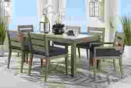 Lake Tahoe Gray 7 Pc Rectangle Outdoor Dining Set With Indigo Cushions