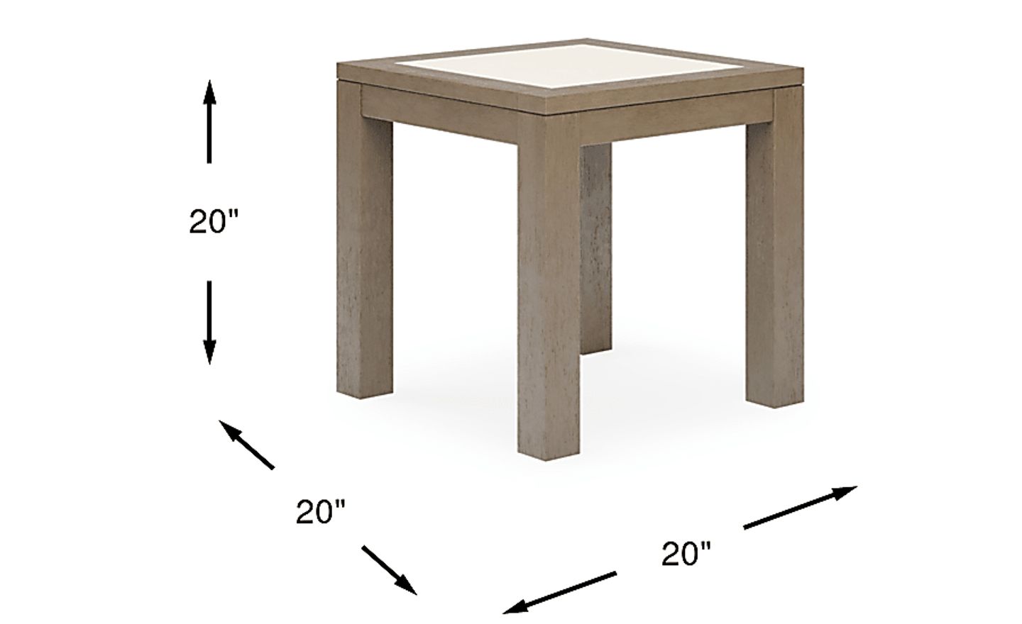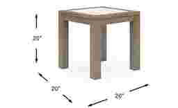 Pull your outdoor seating area together with the Lake Tahoe end table. Made with durable eucalyptus wood, the 20-inch square table is the ideal surface space for refreshments, sunscreen and more. The top features a stone insert that beautifully complements the table's wire brushed gray finish.