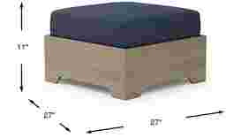 Support your patio decor goals with the Lake Tahoe ottoman. It's perfect for providing leg and foot support and can be used as an extra seat. Made with a long-lasting eucalyptus wood base, the ottoman is topped with a durable Sunbrella cushion in a beautiful indigo color. 100% Sunbrella fabric. To clean Sunbrella fabric cushions remove dirt and spray on cleaning solution (water and mild soap), then use a soft bristle brush or sponge. Allow cleaning solution to soak into fabric and rinse thoroughly until soap residue is removed. Air dry. Do not dry clean.