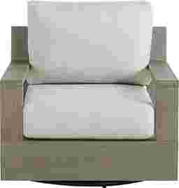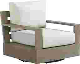 The Lake Tahoe swivel chair combines the durability of eucalyptus wood and outdoor performance Sunbrella cushions for a stylish outdoor seat with staying power. Contemporary lines and a slat back provide effortless style, while the seagull beige material complements the weathered wire brushed gray finish. A soothing swivel base is the perfect final touch, keeping you in the conversation at any angle.