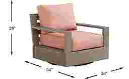 The Lake Tahoe swivel chair combines the durability of eucalyptus wood and outdoor performance Sunbrella cushions for a stylish outdoor seat with staying power. Contemporary lines and a slat back provide effortless style, while the terracotta red fabric complements the weathered wire brushed gray finish. A soothing swivel base is the perfect final touch, keeping you in the conversation at any angle.