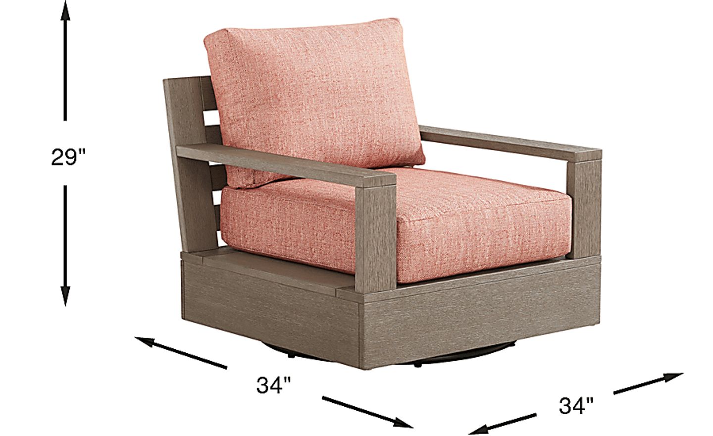 With a footprint of 34 inches by 34 inches, this chair provides a deep, lounge-like seating experience without overwhelming smaller spaces. Its low-profile 29-inch height and clean, contemporary lines help maintain an open feel, making it an excellent choice for apartment balconies or curated garden nooks where space is at a premium.