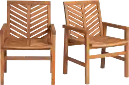 Provide outdoor seating space with these stylish Lake Tana patio chairs. Of a transitional and modern design style, these chairs feature a chevron inspired seat and back rest. Made of acacia hardwood in a brown stained finish to complement the outdoors. Set in your backyard, or on your patio, deck, or porch to lounge on while you enjoy the sunset or chat with a friend. This set includes two chairs. Customer Assembly Required